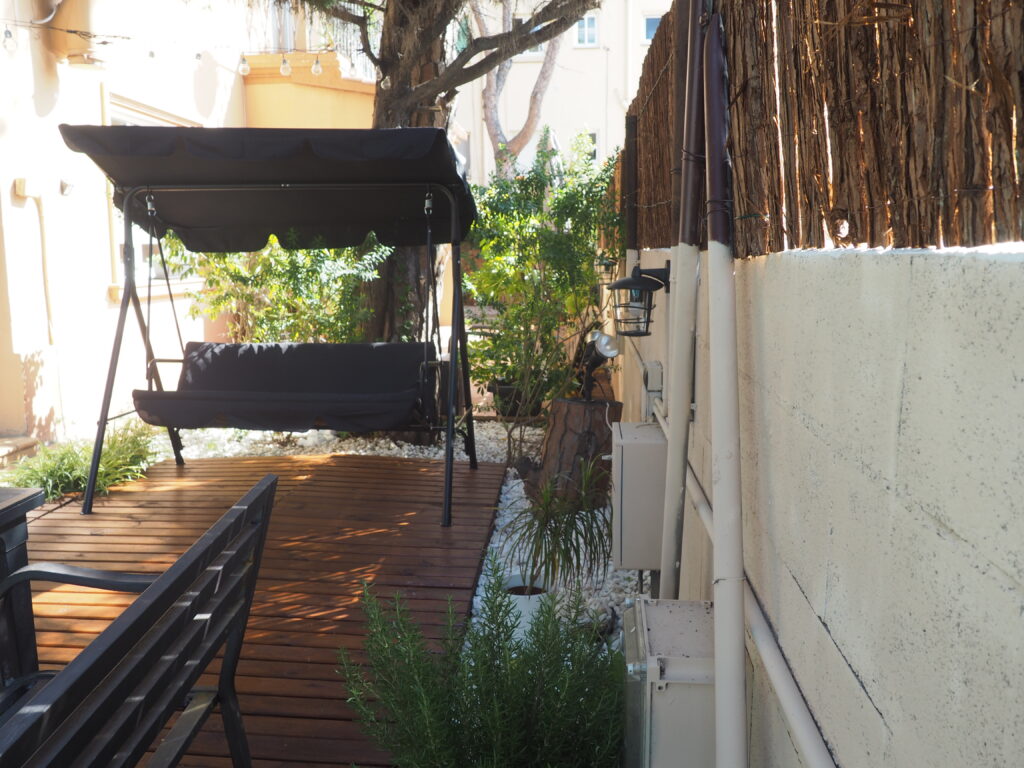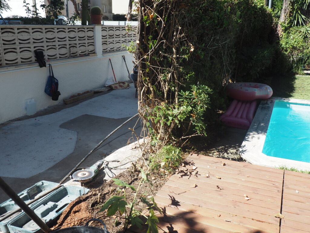 The part of the garden behind the house has always been less crowded for us. We enjoyed the garden more in the front, where we have the pool, the lawn, the hammocks and the table, which is why we took less care of the back area. We did a total renovation this summer.
