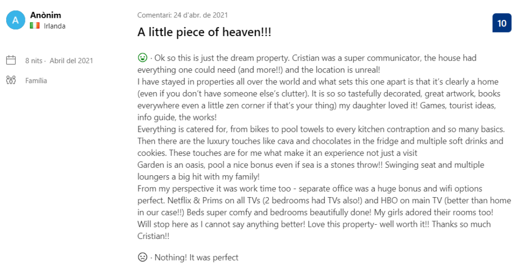 Our house, Villa Bella Estança is also advertised on Booking, and the prize we received was through this portal. When guests who choose our home to spend their vacation, or some days here, they leave, they are asked to post a review on the web. Booking.com compiles these and creates an average rating based on all the ratings and comments it has received. We have taken, no more and no less than …